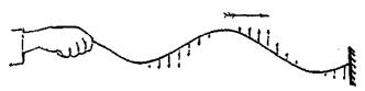 На рисунку зображена поперечна хвиля (тобто така, у якій коливання поширюються у напрямі, перпендикулярному напрямам, в яких вони відбуваються).