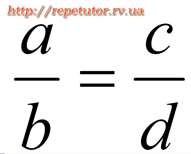 або a:b=c:d a і d - називають крайніми членами (елементами) пропорції, b і c - середні члени (елементи) пропорції. Основна властивість пропорції: якщо пропорція правильна, то добуток крайніх членів пропорції дорівнює добутку середніх її членів. ad = bс З рівності ad = bс можна скласти вісім пропорцій