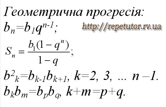 - Суми перших ен-членів (n-елементів) геометричної прогресії